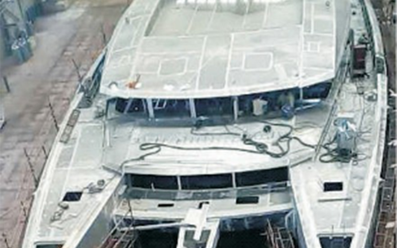 110ft系列帆船船體及上建材料;鋁合金總長:34.4米 型寬:14.83米 型深:2.3米排水量:155 噸