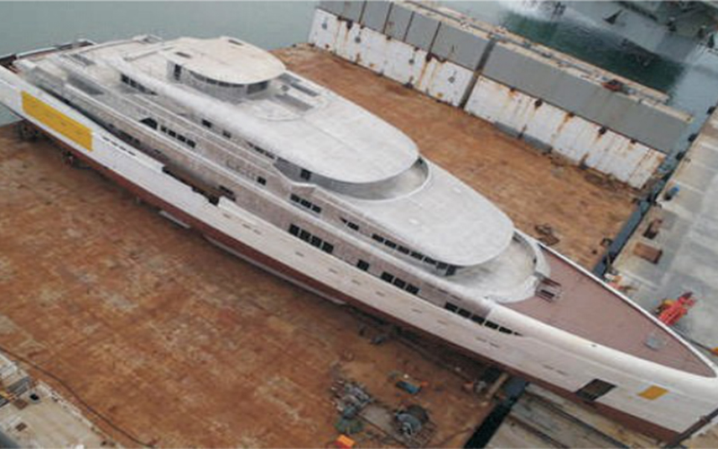 來(lái)福士88米豪華游艇船體及上建材料;鋁合金總長(zhǎng):88.8米 型寬:15.6米上建:3層鋁合金上建 航速:17節(jié)